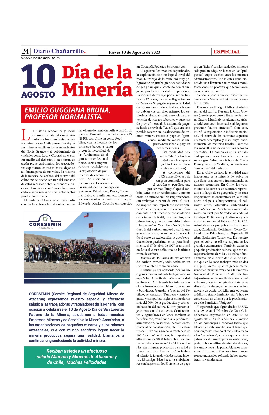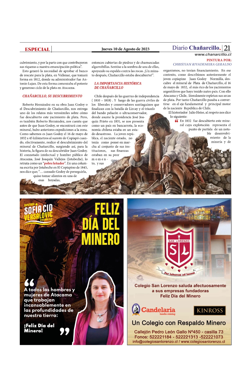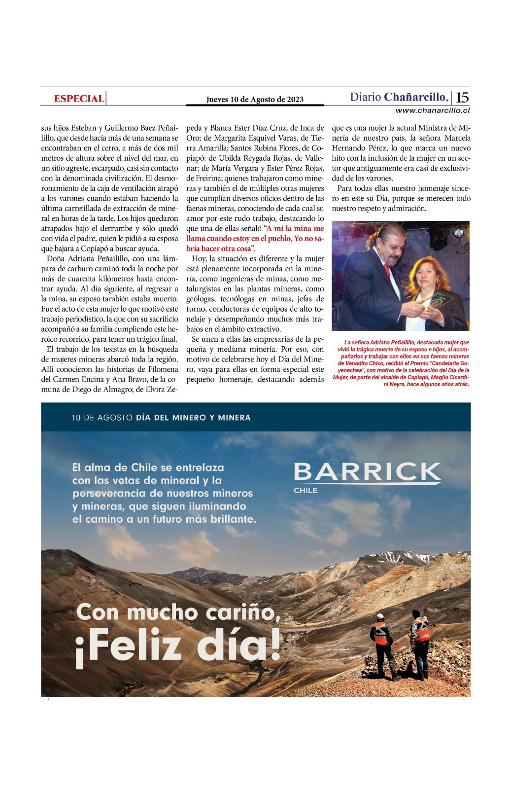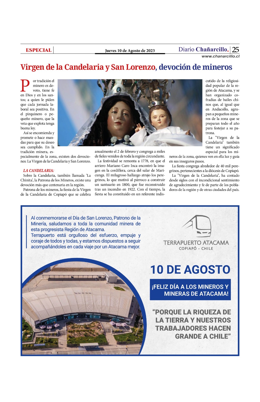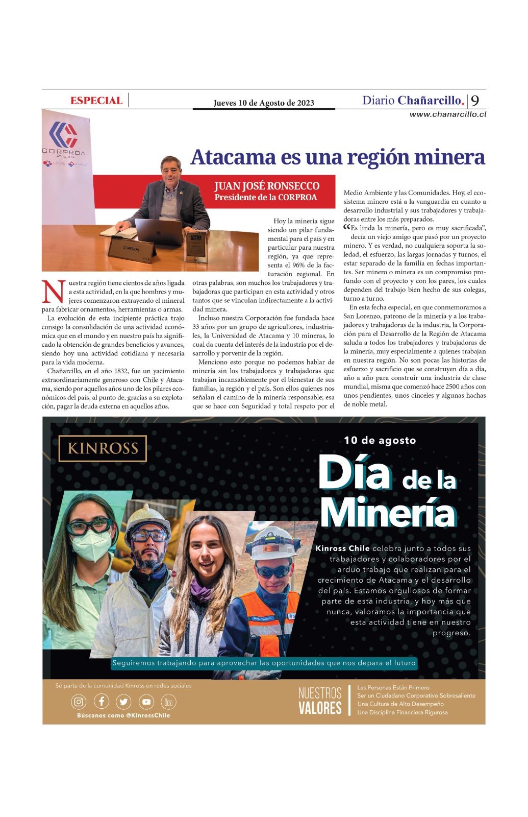 Diario Chañarcillo agradece fidelidad y confianza de sus clientes en publicación extraordinaria de Suplemento por Día del Minero