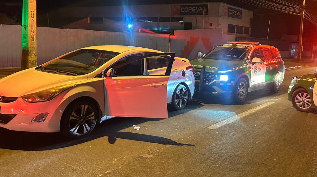 Dos adultos y de nacionalidad chilena fueron detenidos por el delito de infracción a la Ley 21.495, artículo 197 Ter, conducción temeraria de vehículo motorizado y porte de arma blanca.