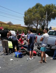 En accidentes casi simultáneos, en horas de la tarde de ayer en diversos sectores de Copiapó, dos motociclistas resultaron lesionados al colisionar con vehículos mayores, específicamente automóvil y camioneta, debiendo ser trasladados hasta el Servicio de Urgencia del Hospital Regional por personal del SAMU.