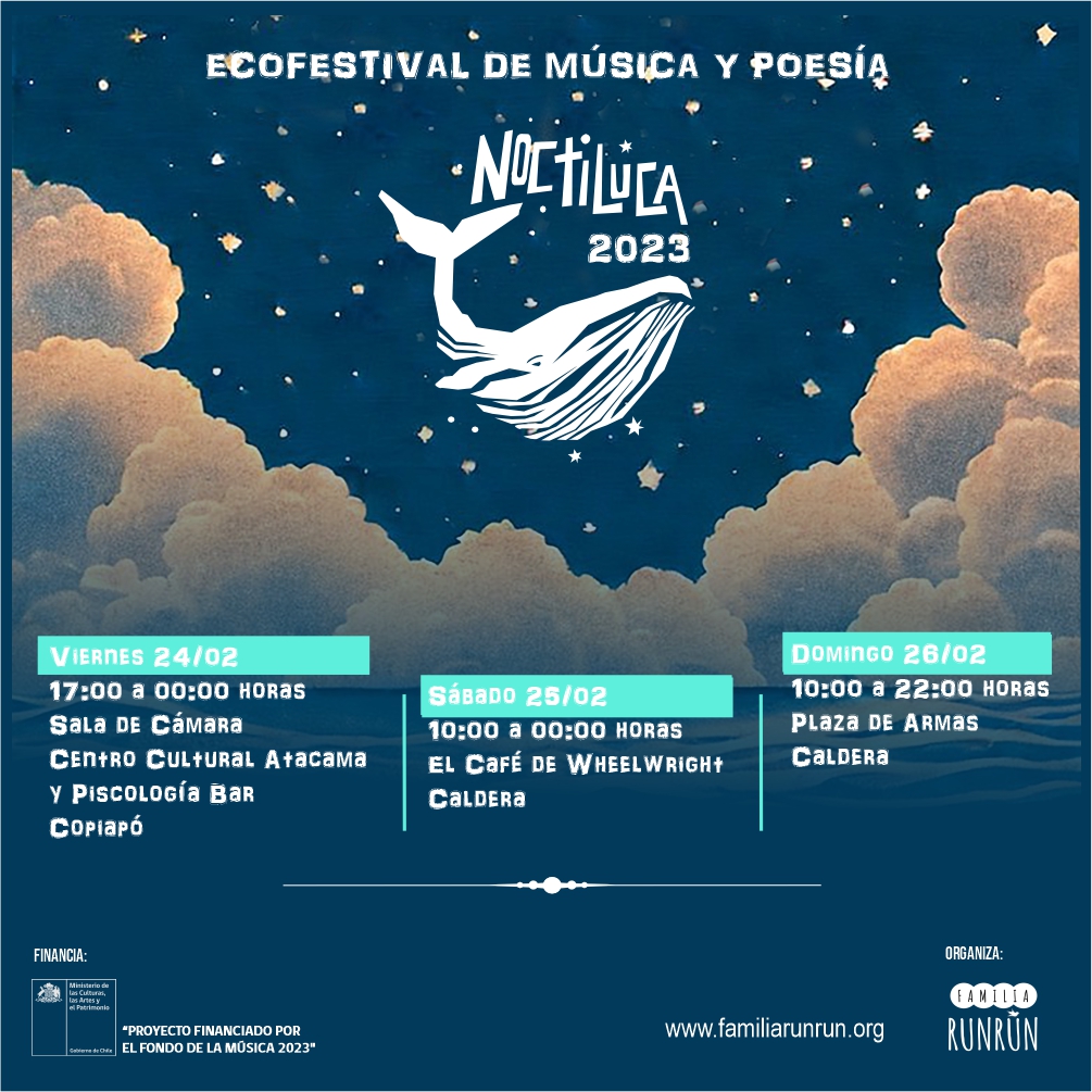 El evento cultural, Ecofestival Noctiluca, volverá a Atacama para presentar diversos shows de música y poesía. La iniciativa fue financiada por el Fondo de la Música 2023 del Ministerio de las Culturas, las Artes y el Patrimonio.