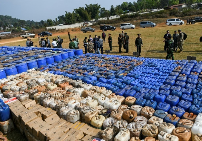 Ejército birmano decomisa «océano» de heroína y metanfetaminas en Triángulo de Oro