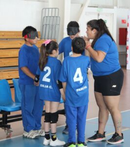En el Polideportivo Karen Gallardo Pinto se realizó este sábado un entretenido encuentro formativo de la disciplina de goal ball, deporte para personas con discapacidad visual en el que participan dos equipos de tres jugadores cada uno y que se basa principalmente en el sentido auditivo para detectar la trayectoria de la pelota en juego que lleva cascabeles en su interior.