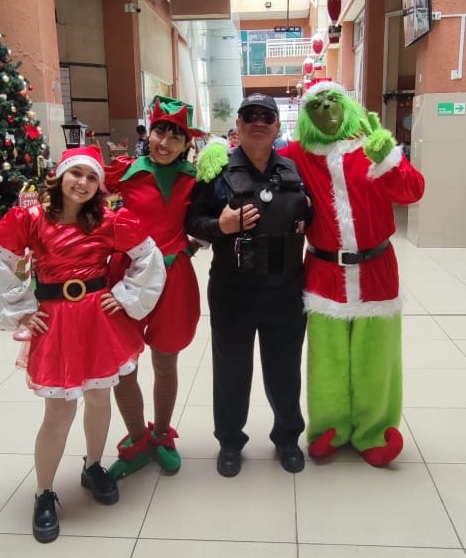 Sorpresa causó entre los clientes y comerciantes de Mall Plaza Real al ver la presencia del Grinch, haciendo de las suyas en el centro comercial.