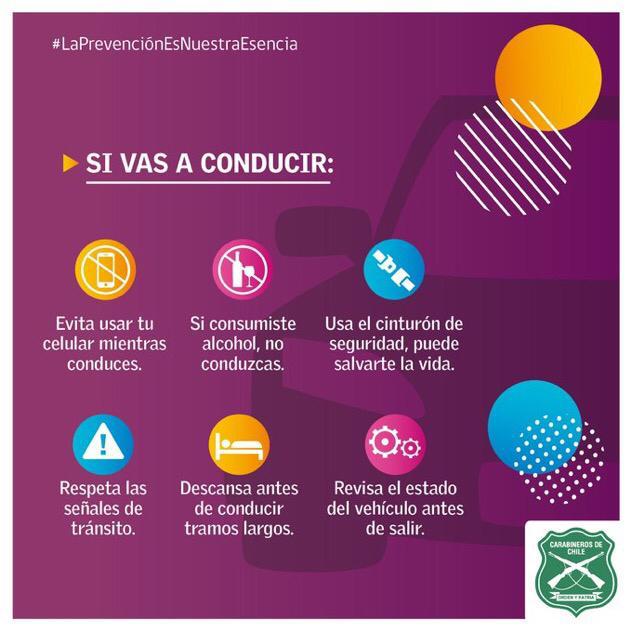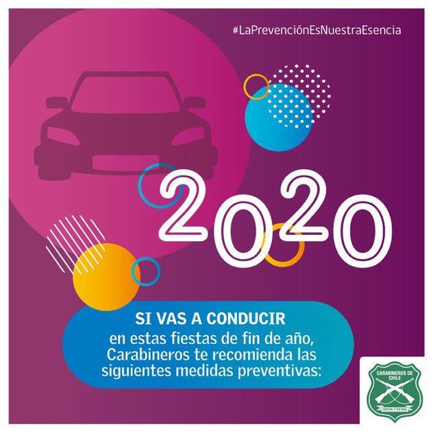 Con el propósito de llamar la atención de las personas a la prevención y al autocuidado, Carabineros de Chile confeccionó una serie de gráficas alusivas a las celebraciones de Fin de Año. A través de ellas, se busca reforzar en todos los sectores de la ciudadanía acciones comunicacionales que permitan prevenir los accidentes y también los delitos.