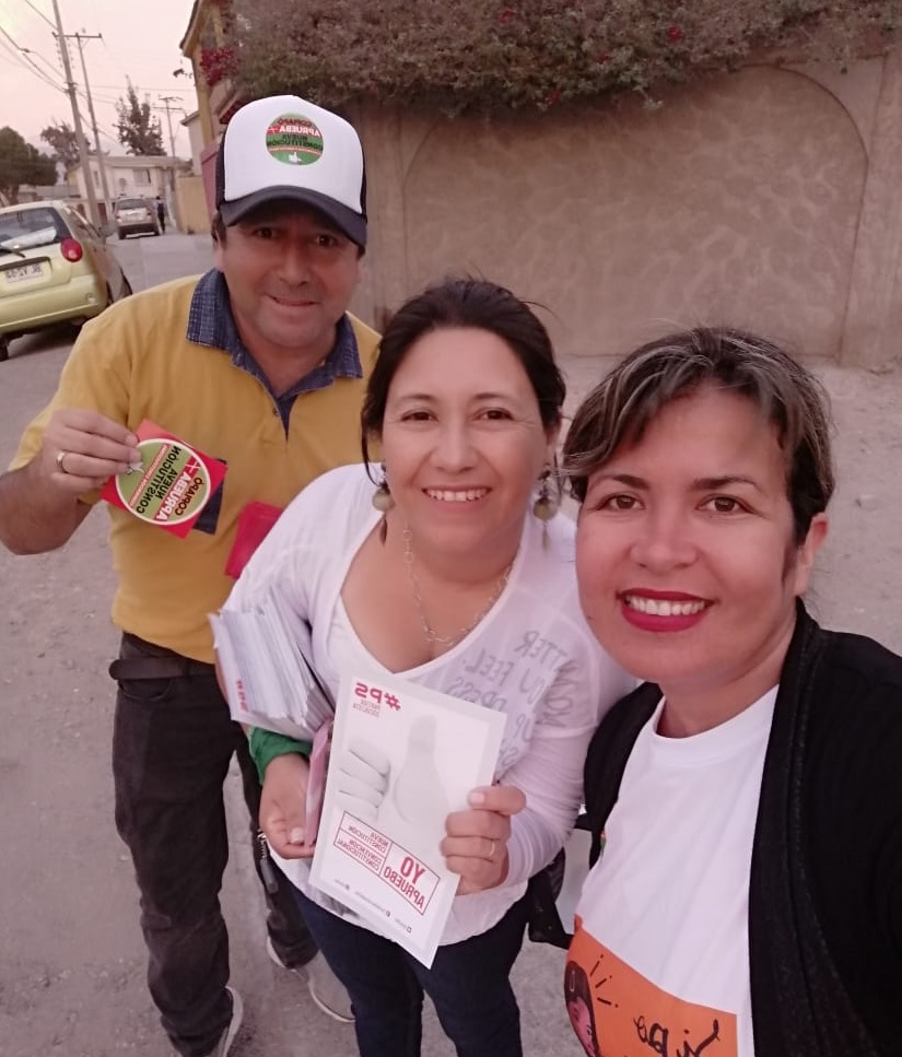 En esta ocasión, primeramente presentamos la opción del Partido Socialista, a través de la miembro del Comité Central del Partido Socialista, Ema Alabnéz Aróstica, quien enfáticamente señaló “los socialistas Aprobamos con toda convicción”.