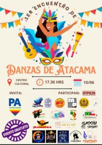 Un evento de primer nivel promete ser el «Primer Encuentro de Danzas de Atacama» en el Centro Cultural de Copiapó, que tendrá lugar el sábado 10 de junio, a contar de las 17.30 horas en el Centro Cultural situado en la Alameda Matta de Copiapó.