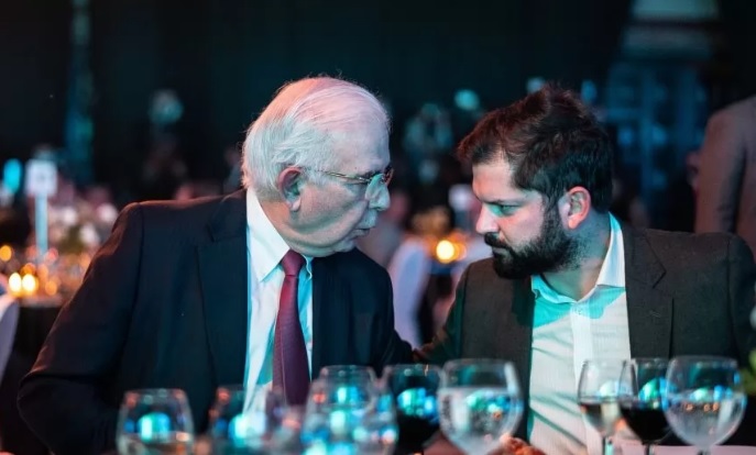 El tenso momento de Boric y el presidente de Sonami en cena anual del gremio