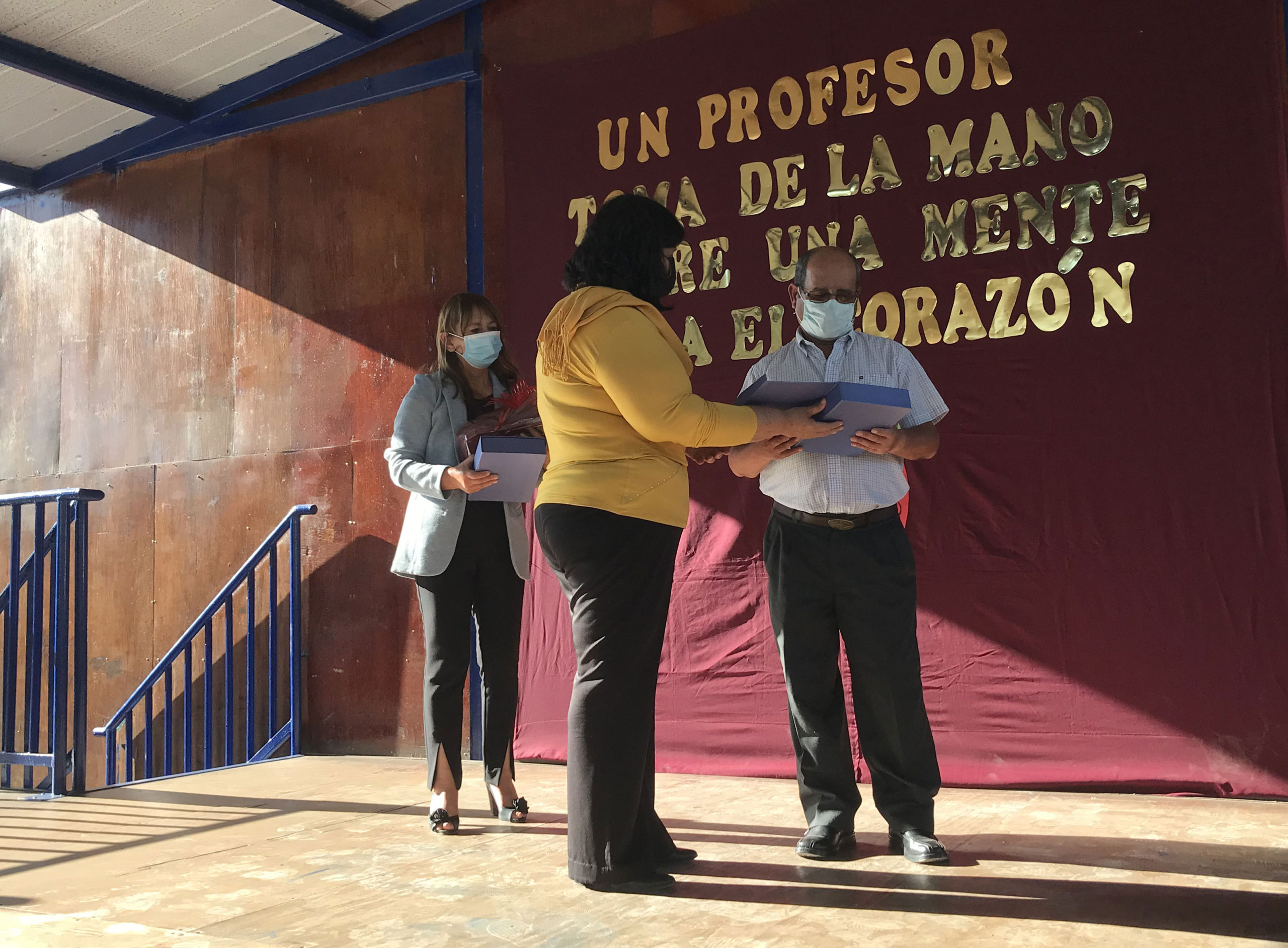 La profesora de Lenguaje, María Teresa Navea expresó, “Es difícil despedir a dos grandes y queridos profesores nuestros que jubilan, Verónica Llancamil Arias y Hernán Matus Araya, ya que son y serán un verdadero ejemplo a seguir, docentes con vocación y compromiso social, que dedicaron gran parte de sus vidas a entregar no solo la semilla del conocimiento, sino que también la entrega de valores y principios, siempre exigiendo todo lo necesario para tratar de hacer niños y niñas de bien. Docentes que han sido testigos de los avances tecnológicos y virtuales, pues tuvieron que sobreponerse y adaptarse rápidamente a estos cambios aprendiendo nuevas formas de enseñanza, empatizando con esta nueva generación de niños, generando una nueva visión de vida. Estamos seguros de que sus corazones están contritos, por un lado, la satisfacción y alegría de un trabajo bien hecho, y por otro el desafío de reformular vuestras vidas es que Dios les dio el más bello de los dones, el de la enseñanza, jamás podrán dejar de ser profesores, es simplemente su esencia. Esperamos que el destino nos vuelva a reunir y vuelvan a su escuela Las Canteras, como nuestros queridos colegas, porque definitivamente los extrañaremos”.