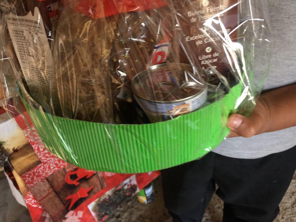 Canasta que contiene alimentos no perecibles , verduras y frutas, útiles de aseo, además de material educativo en apoyo a la lectura y escritura, todo ello con el propósito de motivarlos en sus procesos de estudio, siendo también un estímulo a su esfuerzo personal.