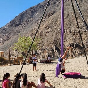 Este taller está diseñado para potenciar la destreza física y la expresión artística a través de las acrobacias en tela, brindando a los participantes la oportunidad de desarrollar habilidades únicas. Con enfoque en la superación personal y el trabajo en equipo, los participantes aprenderán a crear sus propias secuencias de acrobacias mientras fortalecen tanto su cuerpo como su mente. Una experiencia que va más allá de la simple destreza física, enriqueciendo sus vidas con aprendizajes integrales y significativos.