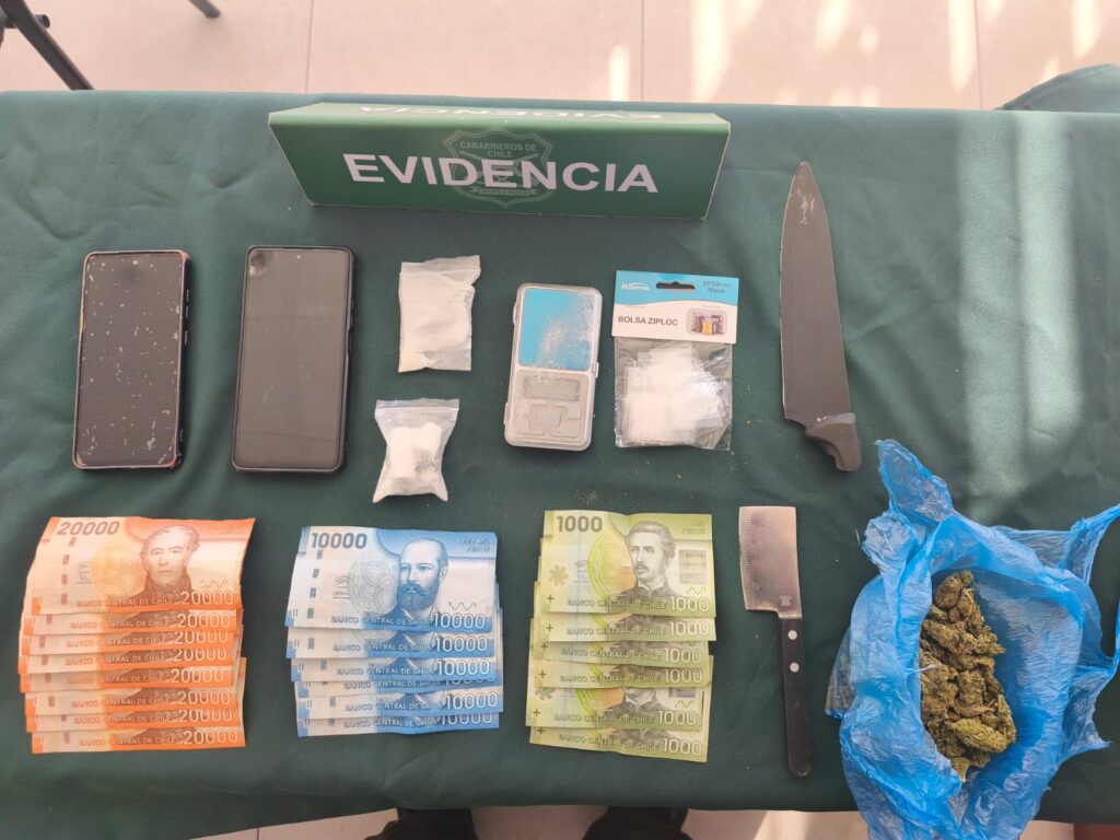 Durante el procedimiento, y tras una revisión del automóvil y sus ocupantes, el personal policial incautó diversas especies asociadas al delito de microtráfico de drogas, entre ellas $246.000 en dinero en efectivo, correspondiente a billetes de distintas denominaciones. Además de dos bolsas de nylon transparentes contenedoras de una sustancia blanca cristalina, similar al clorhidrato de cocaína; una bolsa de nylon de color azul contenedora de una sustancia vegetal, similar a cannabis sativa. También una pesa digital tipo gramera y dos cuchillos y dos teléfonos celulares.