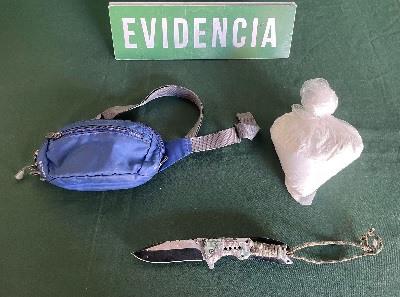 El infractor mantenía en su poder 532 gramos 200 miligramos de Ketamina y un arma blanca tipo cortaplumas, razón por la cual se procedió a la detención de este joven chileno, de 15 años, con antecedentes anteriores por el delito de robo en lugar habitado.