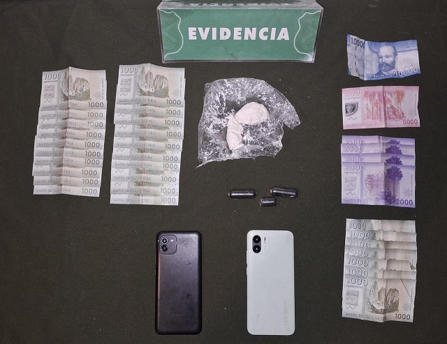 Finalmente y alrededor de las 20:40 horas de ayer, el personal Sección Centauro sorprendió en flagrancia a dos hombres chilenos de 31 y 33 años, quienes en el sector de La Paz con la Ruta 5 Norte realizaban transacciones de drogas. Los aprehendidos de iniciales E.A.A.L. y F.E.N.P. pasaron a control de detención por infracción Ley 20.000.