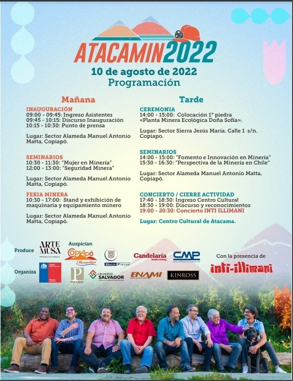Con la presencia de la Ministra de Minería, Marcela Hernando, además de autoridades de la zona a las 09.45 horas de hoy miércoles 10 de agosto, será inaugurada la Gran Feria de la Minería Atacamin 2022, en el sector Centro Cultural Atacama (alameda Manuel Antonio Matta).