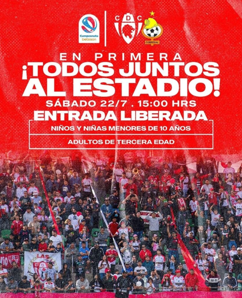Este martes, Deportes Copiapó anunció que las entradas para el partido contra Cobresal serán gratis para niños menores de 10 años y adultos mayores. Los niños deberán ser acompañados por un adulto para el duelo pactado para este sábado a las 15.00 horas.
