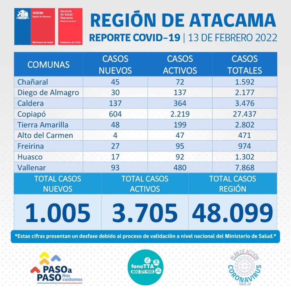 En el día de hoy se registran 1.005 nuevos casos positivos de Coronavirus en la región de Atacama