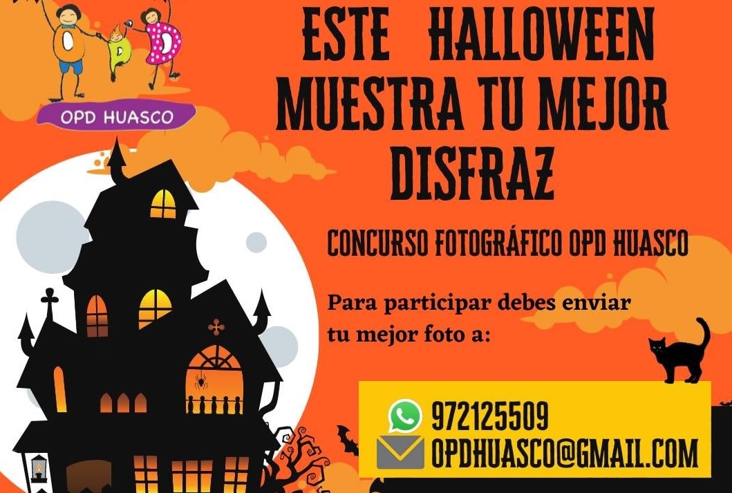 Para participar debes enviar tu mejor foto en esta fiesta de Halloween al WhatsApp: +56 9 7212 5509 – O al correo: opdhuasco@gmail.com