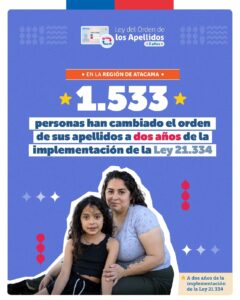 En la región de Atacama: 1.533 personas cambiaron el orden de sus apellidos a dos años de vigencia de Ley 21.334