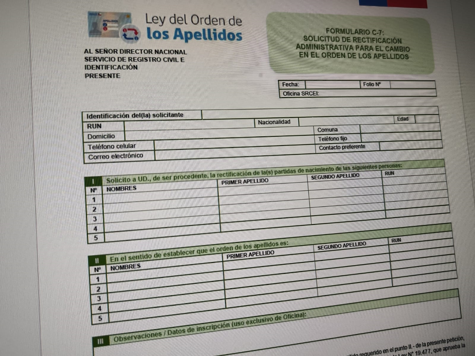 Entre los 10 apellidos que pasaron a ser el primero de los dos que lleva cada individuo, figuran González (693 solicitudes), Rojas (556), Díaz (451), Muñoz (442), Castillo (420), Flores (413), Contreras (377), Torres (374), Reyes (352) y Rodríguez (337).