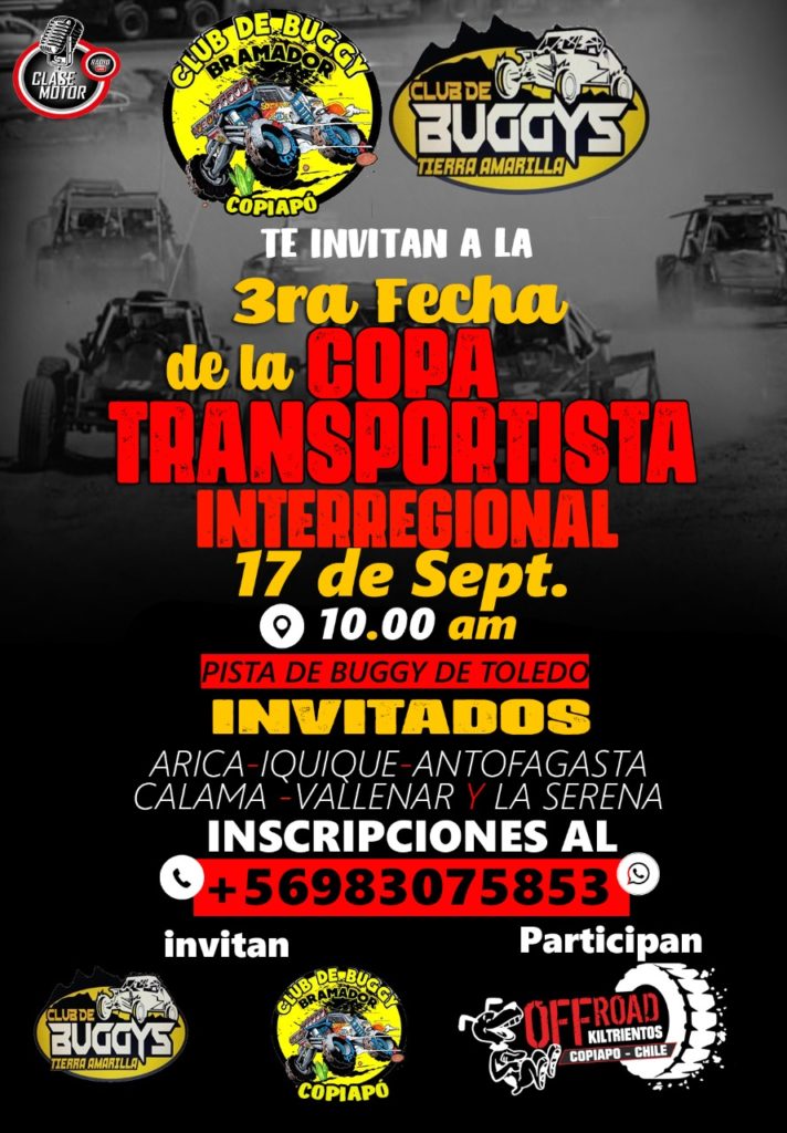 Este evento tuerca es organizado por Club de Buggys Tierra Amarilla, Club de Buggy Bramador Copiapò y Off Road Kiltrientos de Copiapó.