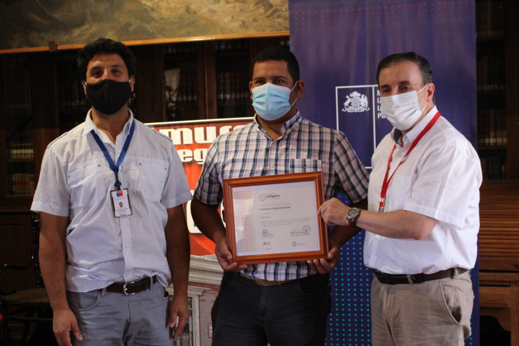 En representación de la SEREMI María Cecilia Simunovic Ramírez, el director del Museo Regional de Atacama Guillermo Cortés Lutz, junto a Rodrigo Zalaquett Fuente-Alba, Coordinador Regional de la Subdirección Nacional de Pueblos Originarios del SNPC entregaron tanto el diploma de reconocimiento Sello Artesanía Indígena.