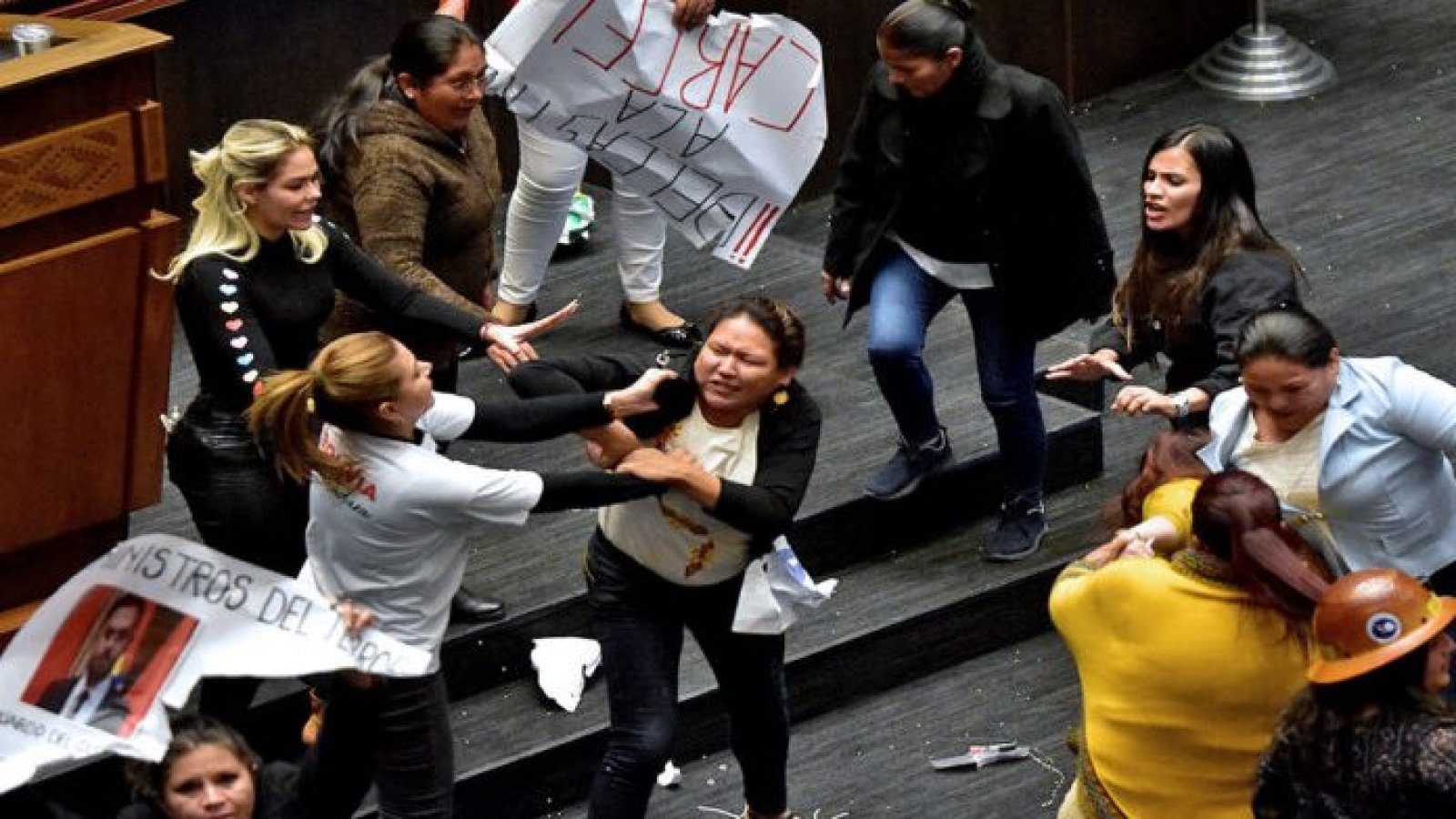 Con patadas, golpes de puños y tirones de pelo, parlamentarias del oficialismo y la oposición chocaron en una sesión pública del Parlamento de Bolivia.