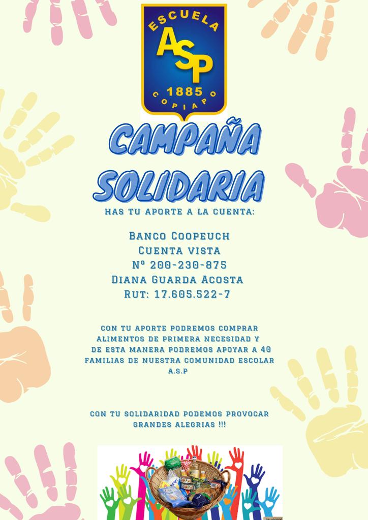 La comunidad de la Escuela Abraham Sepúlveda Pizarro de Copiapó se encuentra desarrollando una nueva campaña solidaria, con el propósito de reunir recursos económicos para beneficiar a 40 familias de dicha unidad educativa, afectadas por la pandemia. Esta se prolongará hasta la tercera semana del presente mes de septiembre.