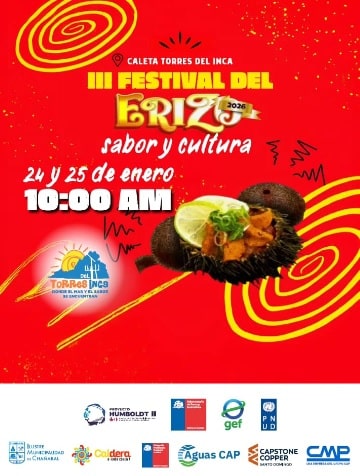 Este fin de semana en Caleta Torres del Inca se vivirá un gran evento, con la mejor gastronomía marina, música y nuestras tradiciones locales: el III Festival del Erizo.
