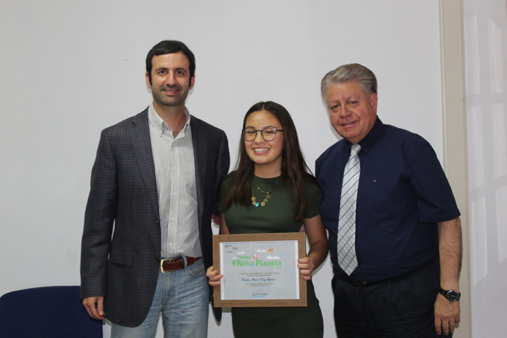 El reconocimiento fue entregado de manos del Seremi del Medio Ambiente, Guillermo Ready a la estudiante Xiulian Kong, quien fue acompañada por el Director del Establecimiento don Isidoro Zambrano, el Profesor Guía Johnny Labbé, sus padres Hernán y Paola, además de los Profesionales de Recursos Naturales de la Seremi.