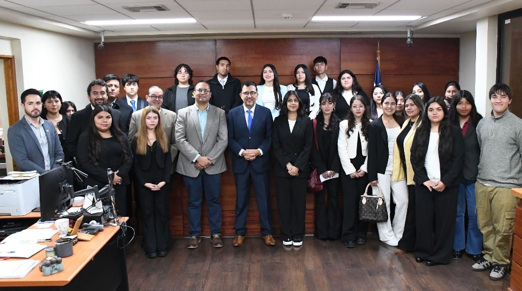 La delegación, acompañada por el docente Pedro Tapia, fue recibida por la administradora del tribunal, Marianela Cid, junto a las funcionarias Meiling Rodríguez y Silvana Maluenda, quienes guiaron a los jóvenes por las dependencias del juzgado y les explicaron el funcionamiento de sus distintas unidades.