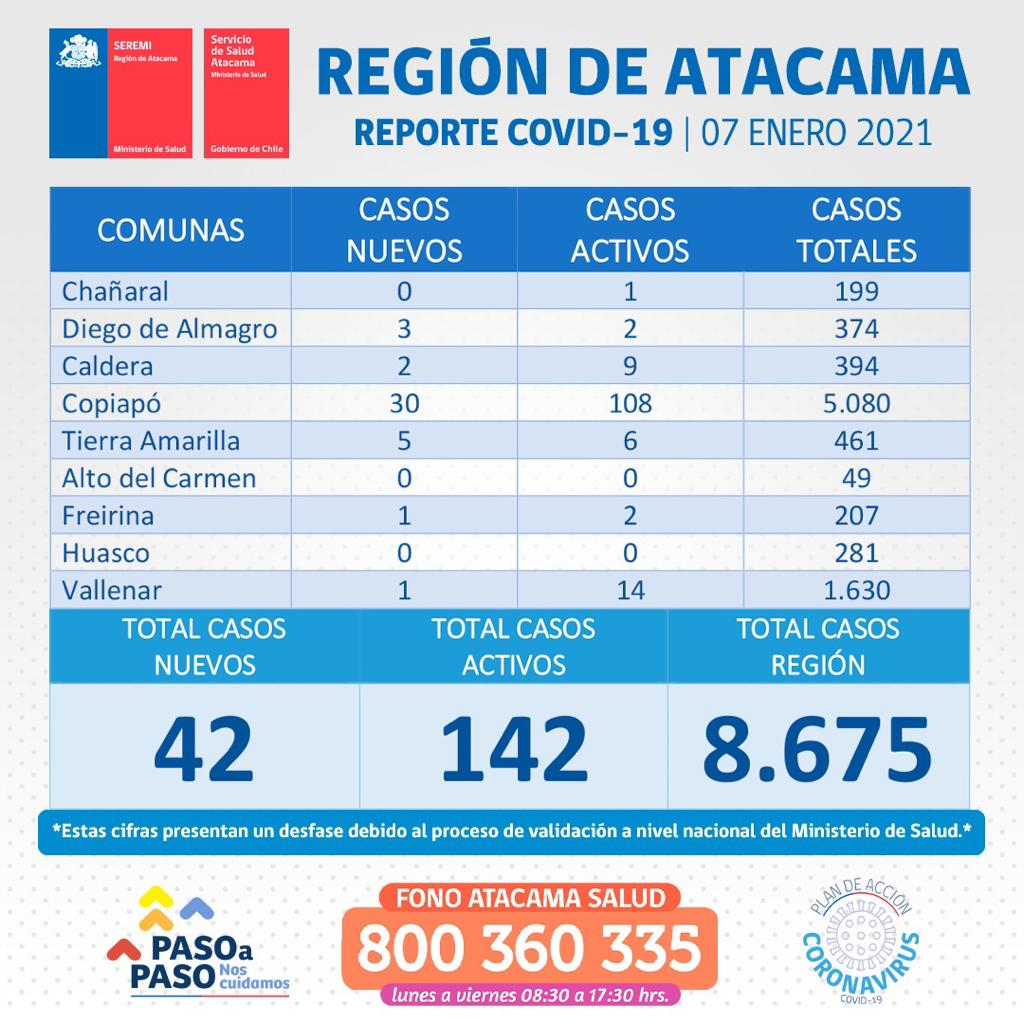 EXTRA: 42 nuevos casos de COVID-19 elevan los activos a 142 este jueves en Atacama