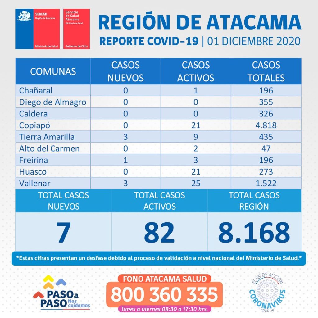 EXTRA: 7 nuevos casos de COVID-19 y 82 activos se registraron este martes en Atacama