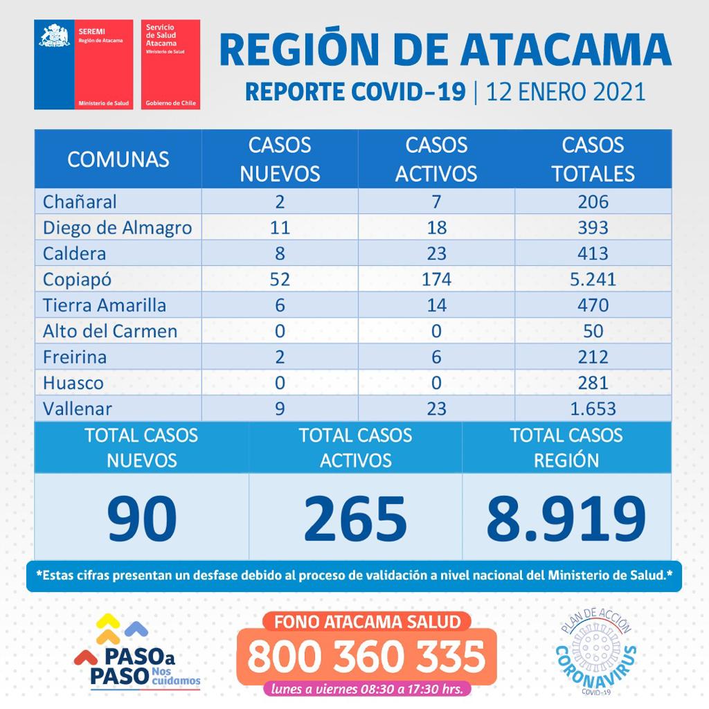 EXTRA: 90 nuevos casos de COVID-19 y 265 activos se reportaron este martes en Atacama
