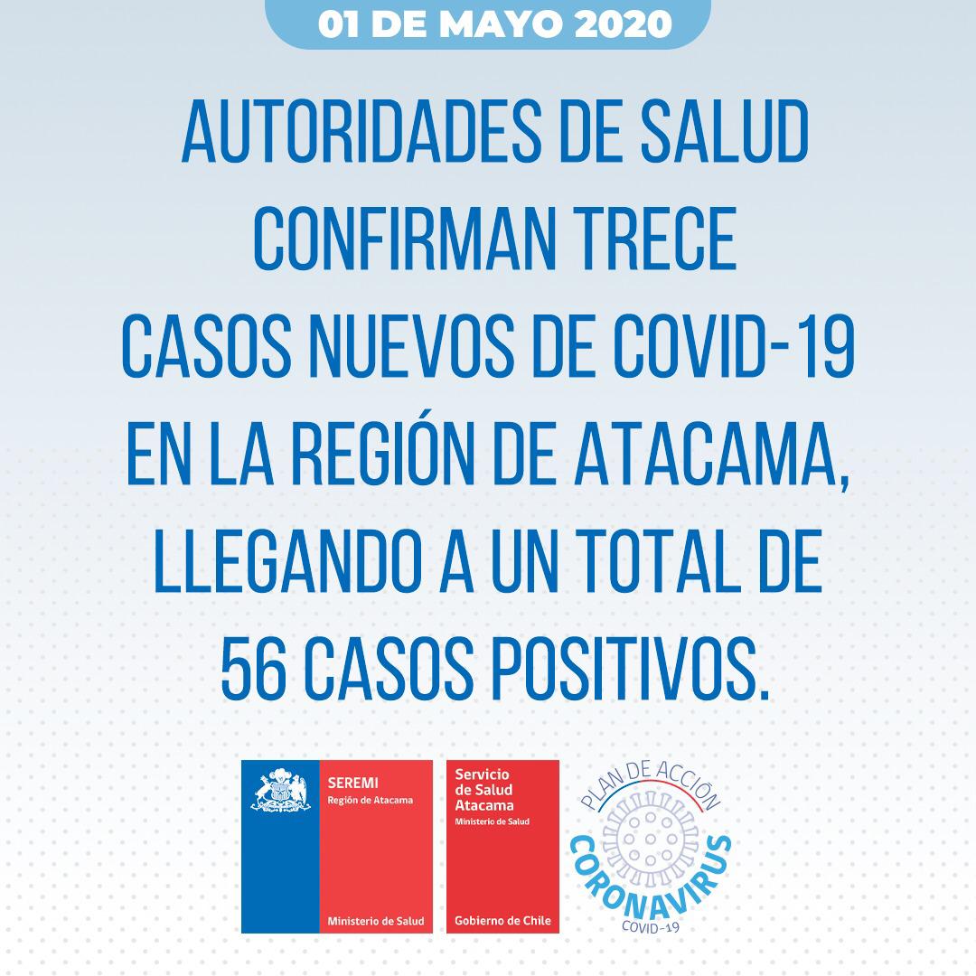 Con esta confirmación, la Región de Atacama actualmente registra 56 casos positivos de Coronavirus.