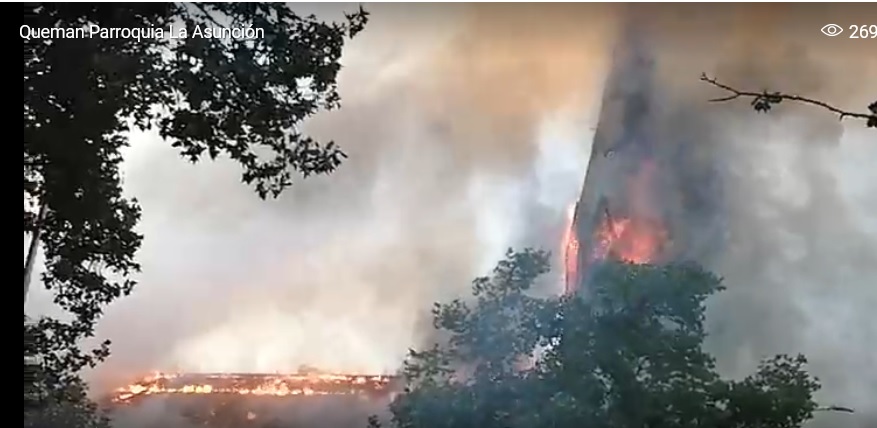 El siniestro en la Parroquia de la Asunción comenzó en medio de los incidentes en los alrededores por el primer aniversario del estallido social.