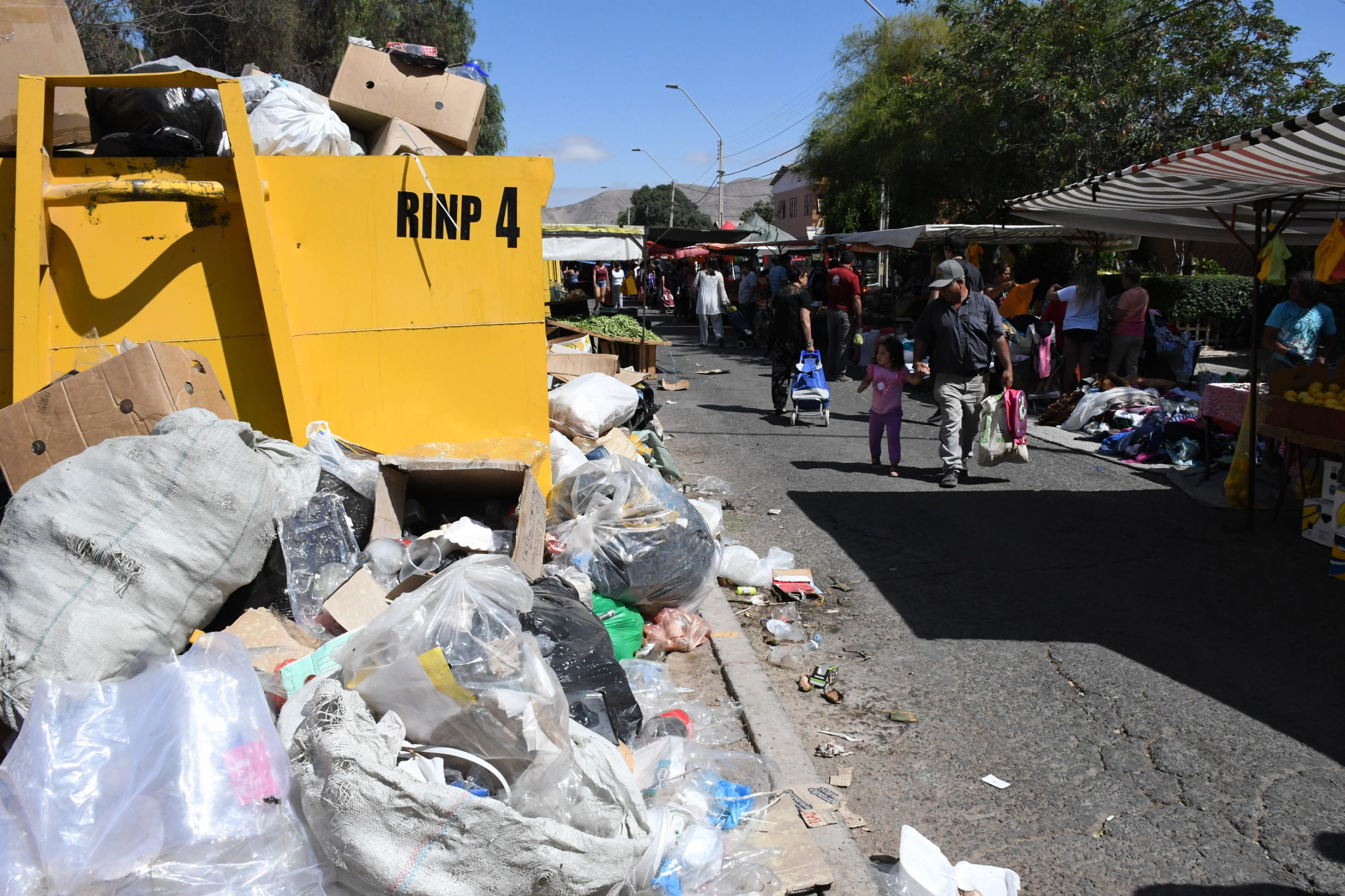 A las 11:00 de la mañana de este martes un enorme container de basura amarillo, desbordado con desechos de todo tipo, estaba justo frente al puesto de xxxxxxx, quien informó que, además de la pestilencia, tuvieron pérdidas en las ventas porque “la mayoría de los usuarios pensaron que la feria no se realizaría, ya que ellos no se habían ido (…) a esta hora yo tenía vendido hasta 40 lucas y hoy día no llevo ni 10”.