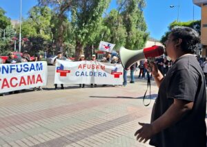 Es así que en principio se reunieron en el frontis del municipio copiapino, para posteriormente dirigirse al frontis del edificio del Gobierno Regional, a fin de hacer saber a la autoridad por el movimiento y paralización, que obedece a un acuerdo nacional de la Confusam nacional.