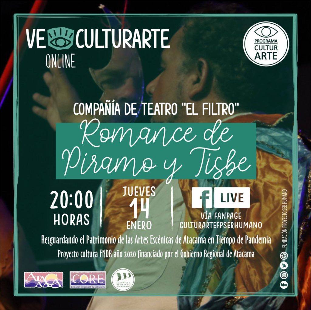 La jornada online a través de Facebook Live a contar de las 20:00 Ve Culturarte trae este clásico del teatro atacameño, con la compañía de mayor trayectoria en la zona, El Filtro, quienes nos presentarán una particular versión de este romance, un extracto de «Sueño de una noche de verano» de Shakespeare.