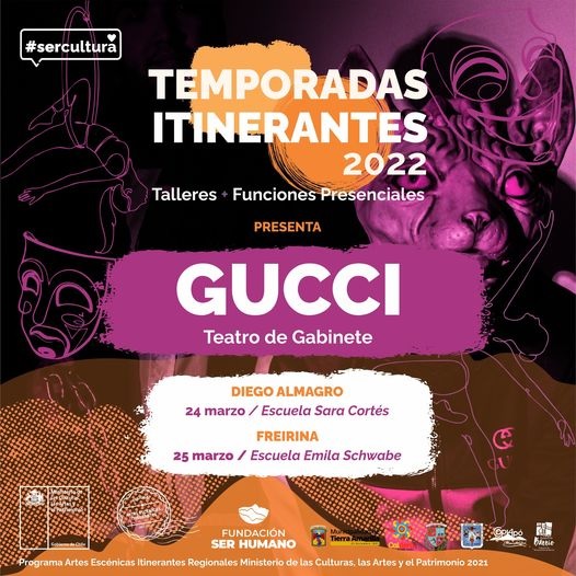 Las funciones serán el día 24 de Marzo en la Escuela Sara Cortés de Diego de Almagro y luego el día 25 de Marzo en la Escuela Emilia Schwabe en Freirina, en la cual, los estudiantes podrán conocer a “GUCCI” ingresando a una estructura diseñada para la obra y tener una experiencia personal con el personaje.