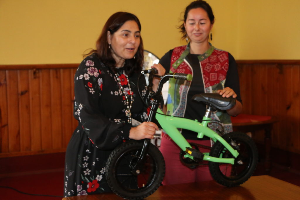 La joven Camila Ahumada, una vez finalizada la ceremonia en el Concejo Municipal, hizo entrega como donación de una bicicleta totalmente reciclada para hacer entrega a un niño o niña como un gesto de cariño hacia su comuna.