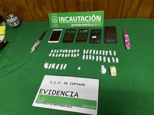 En la región de Atacama, las unidades penales de Copiapó, Vallenar y Chañaral fueron parte de este procedimiento, siendo decomisados elementos ilegales tales como envoltorios con pasta base, papelillos con marihuana, armas hechizas, teléfonos celulares, chip de telefonía, licor artesanal y comprimidos no rotulados.