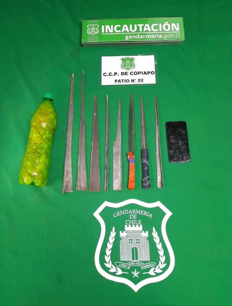 A nivel nacional, se incautaron 623 armas blancas, 274 teléfonos celulares y accesorios relacionados, más abundantes sustancias ilícitas y elementos prohibidos diversos.