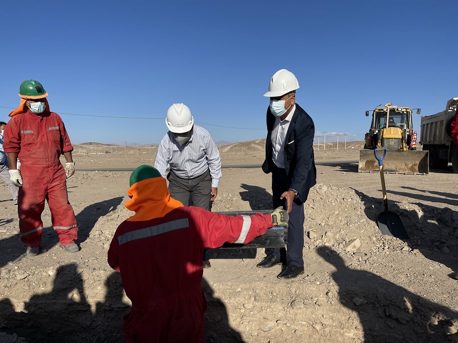 El ejecutivo de la compañía, Sergio Fuentes, junto al alcalde de la comuna Mario Araya y autoridades regionales, pusieron la primera tubería, dando el inicio a las obras de infraestructura sanitaria en el Barrio de Emergencia.