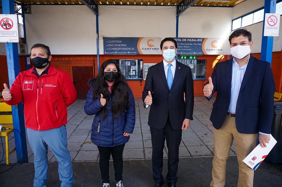 El Delegado Presidencial de la Región de Atacama, Patricio Urquieta García, junto al Seremi (S), del Trabajo y Previsión Social, Víctor Nieto Rojas, y el Seremi de Desarrollo Social y Familia, Luis Morales Vergara, acudieron este jueves al terminal de Buses Casther en Copiapó, para visitar a Camila Pérez, trabajadora de la empresa encargada de la venta de pasajes, custodia y correspondencia, que además, es beneficiaria del Subsidio al Nuevo Empleo, iniciativa impulsada por el Gobierno a través de la cartera del Trabajo y Previsión Social, y su servicio SENCE, para estimular las nuevas contrataciones, apoyo directo a la remuneración de la trabajadora o trabajador. Esto hace que Camila sea elegible para ser beneficiada por el nuevo IFE Laboral, iniciativa que busca estimular aún más la recuperación económica y laboral del país, con un aporte directo al trabajador, y que beneficiará a quienes hayan iniciado una relación laboral con contrato de trabajo a partir del 1 de agosto de 2021, y a quienes se encontraban acogidos al Subsidio al Nuevo Empleo, como el caso de Camila, siempre que su remuneración bruta mensual (RMB) no exceda de 3 Ingresos Mínimos Mensuales (actualmente $1.011.000). Este beneficio es totalmente compatible con el IFE Universal Ampliado.