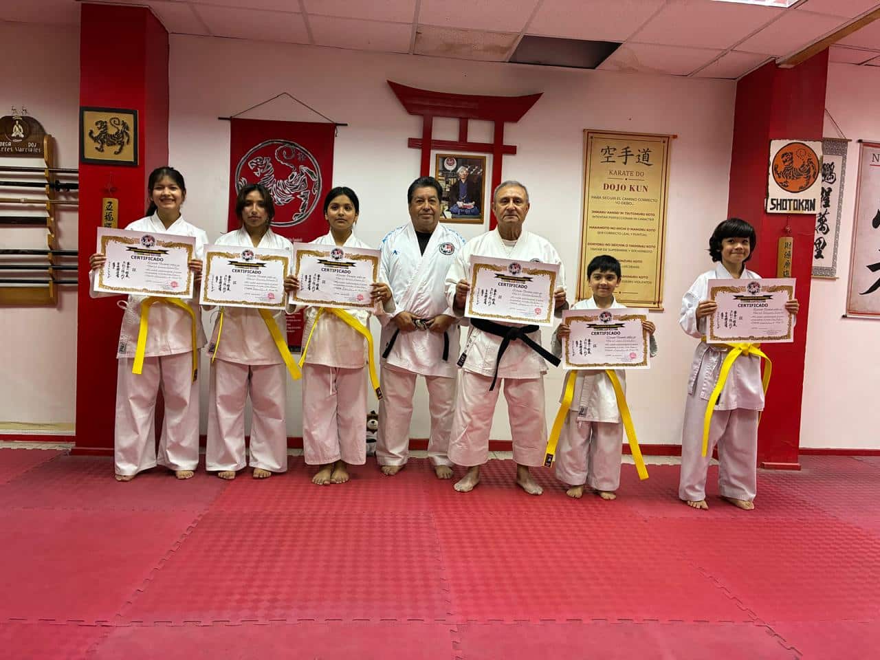 En la oportunidad 6 destacados alumnos recibieron sus nuevos grados en su formación en el deporte del karate. Destaco en esta ceremonia el karateka Hernán Gálvez, quien obtuvo su cinturón negro; después de 20 años de práctica, aprobando un exigente examen.