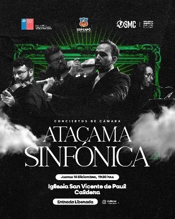 La Municipalidad de Caldera, junto a la Secretaría Regional Ministerial de las Culturas, las Artes y el Patrimonio y la Ilustre Municipalidad de Copiapó, están convocando a la ciudadanía calderina a disfrutar el concierto de cámara «Atacama Sinfónica».
