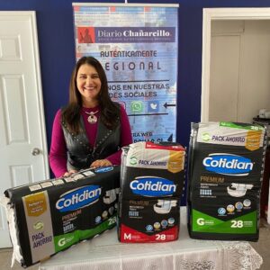 DIPUTADA SOFÍA CID: La parlamentaria expresó sus agradecimientos por esta campaña en pro del Hogar de Ancianos, porque de esta forma se solidariza y entrega respeto hacia los adultos mayores, llegando a esta redacción con pañales desechables. Instó además a la comunidad a hacerse parte de esta cruzada.