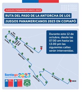 Autoridades afinan detalles de lo que será el paso de la Antorcha de los Juegos Panamericanos y Parapanamericanos Santiago 2023 por la región de Atacama hoy jueves 12 de octubre con 20 relevistas que recorrerán los principales hitos de la capital regional: el Parque Schneider, el Parque Kaukari, Alameda, Estación de Trenes y Plaza de Armas. Una oportunidad para encontrarse con este evento deportivo.