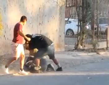 En las imágenes se aprecia como la víctima es atacada con golpes de pies y puño, luego reducido, quedando en el piso.[J1]