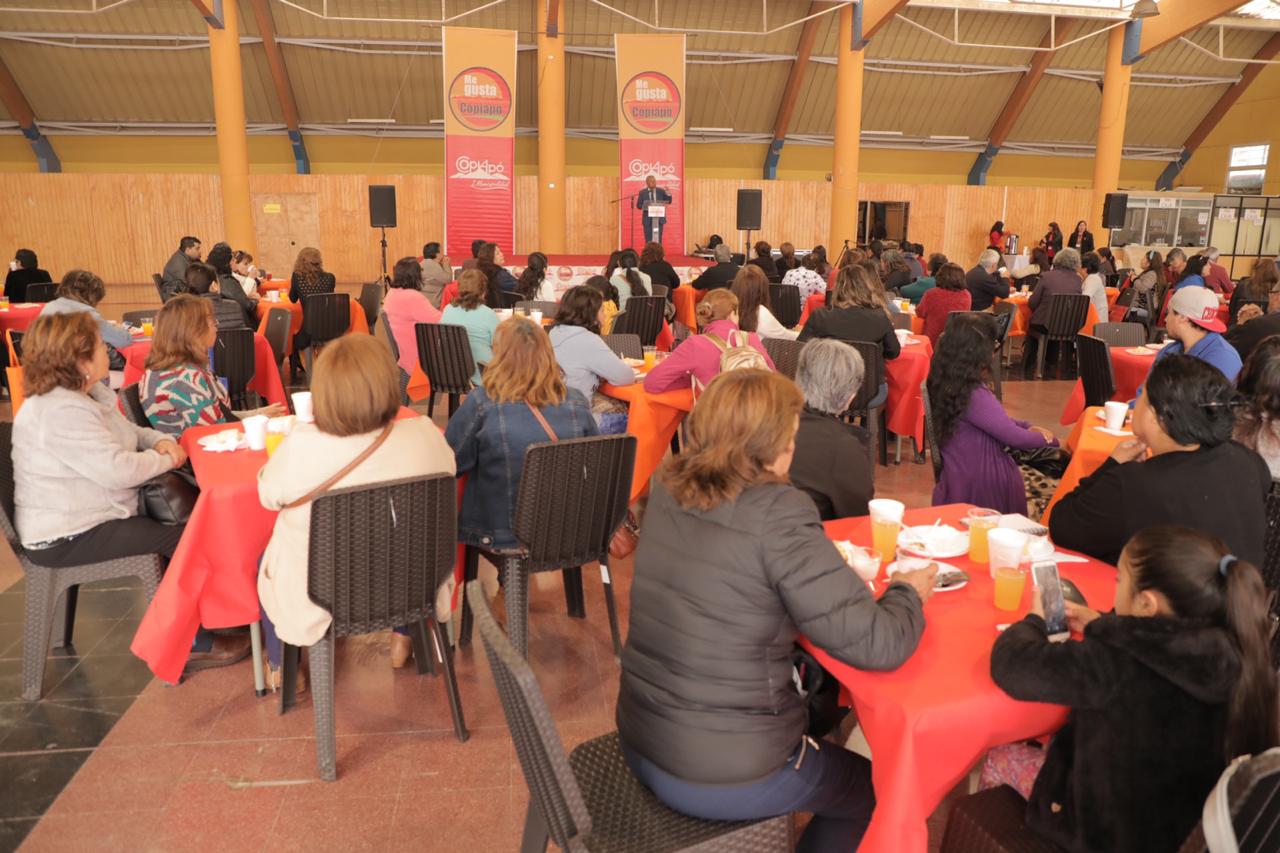 Más de 200 dirigentes vecinales de diversos puntos de la comuna se dieron cita en un encuentro informativos y de camaradería convocado por la Municipalidad de Copiapó. La actividad que estuvo encabezada por el Alcalde Marcos López, buscó presentarles a los vecinos, el programa de actividades sociales y recreativas a realizarse durante este año e inicio del próximo; entre estas, la entrega de dulces y regalos en el marco de las fiestas de fin de año y los tradicionales viajes a las playas. Además, sobre las nuevas líneas de financiamientos y fondos concursables que actualmente están disponibles, que son: “Equipa a tu Equipo” y de emprendimiento para Jefas de Hogar, creados en la actual administración.